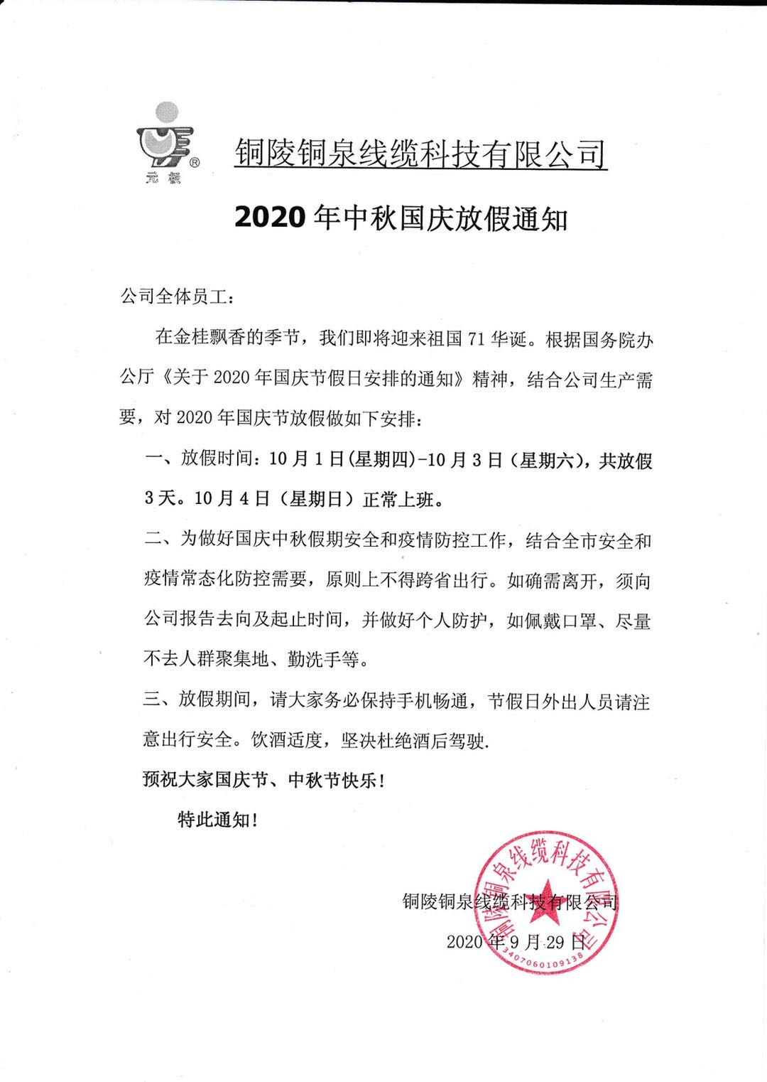 2020年國(guó)慶節(jié)放假通知